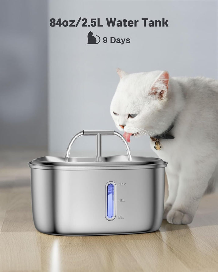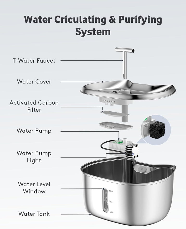 Elevate your pet's hydration experience with this durable, stainless steel cat water fountain that ensures fresh water flow, advanced filtration, and quiet operation for optimal pet health.